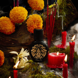 Notes: Osmanthus Absolute, Jasmine Absolute , Champaca Absolute, Marigold, Tuberose, Myrrh, Incense, Civet, Oud from Thailand, Australian Sandalwood, Clove, Cumin Seed, Celery Seed, Ylang Ylang, Orange Flower Absolute, Tangerine, Tea, Oakmoss