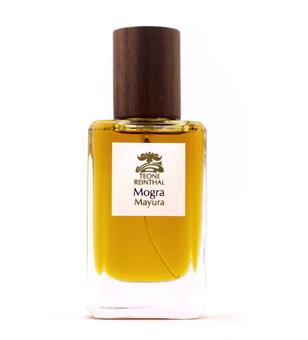 Mogra (eau de parfum). Introducing a beautiful new Summer fragrance, Mogra is an aromatic fougère; a cool, green walk in the rainforest accented by the delicious scent of Arabian jasmine sweetening the journey. Mogra features hand-tinctured tonka beans, Bulgarian lavender, Bourbon geranium, West Australian sandalwood, Ambrette seed, Haitian vetiver, Oakmoss, Orris root and Jasmine Sambac. Mogra is totally unisex and is loved equally by the men and women who have sampled it.